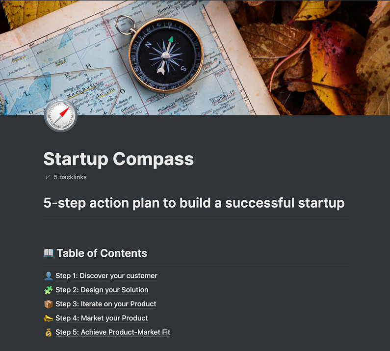 Having used the same steps in the guide on itself and testing with a few dozen entrepreneurs, I’ve some early indicators that this might be useful. Obviously it’s still in very early stage but if you want to give it a try, please visit startupcompass.io and subscribe. I’ll email you the free template and any future updates. Hopefully, this will eventually be another resource to help entrepreneurs and founders build their product and startup.